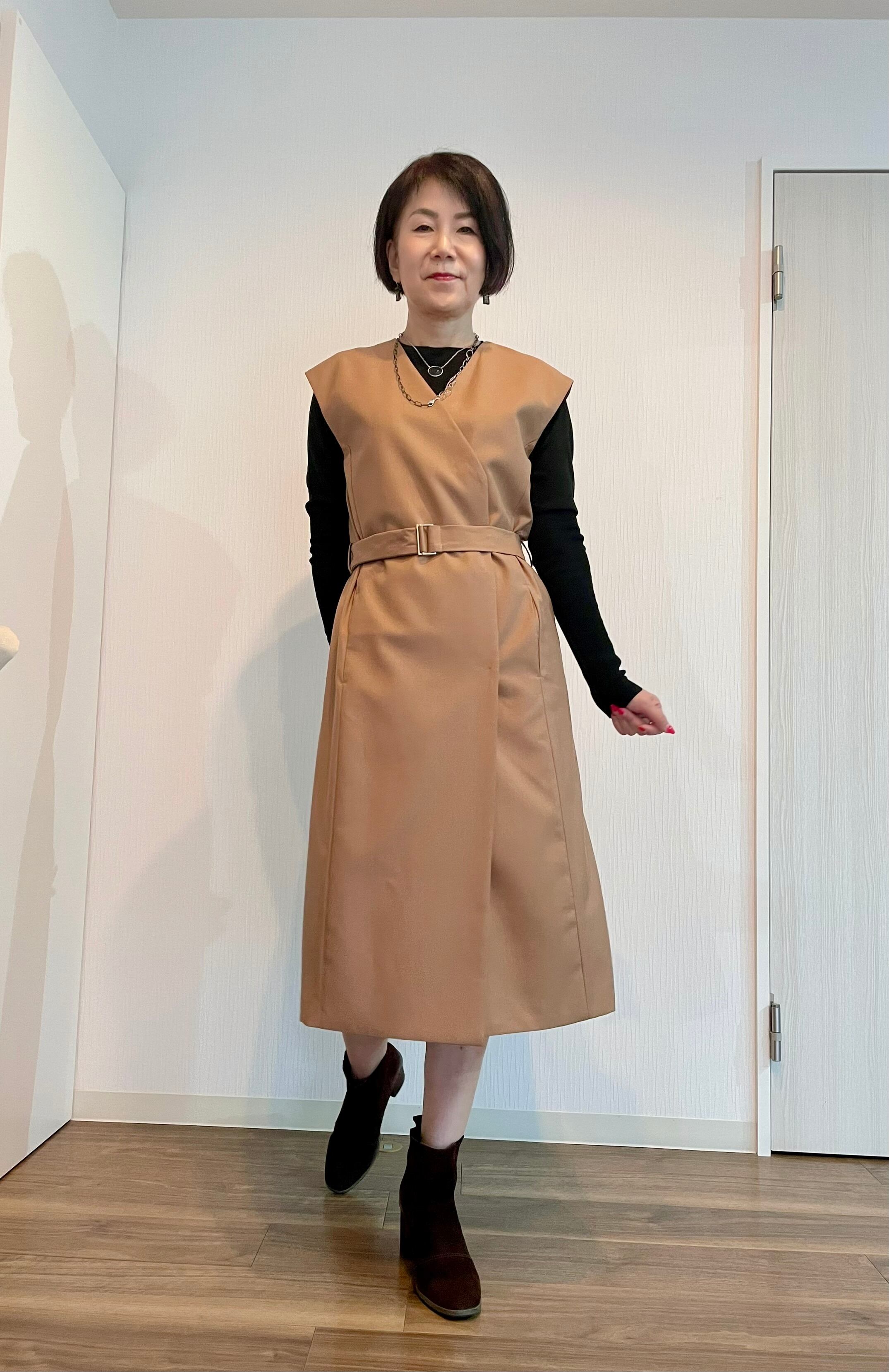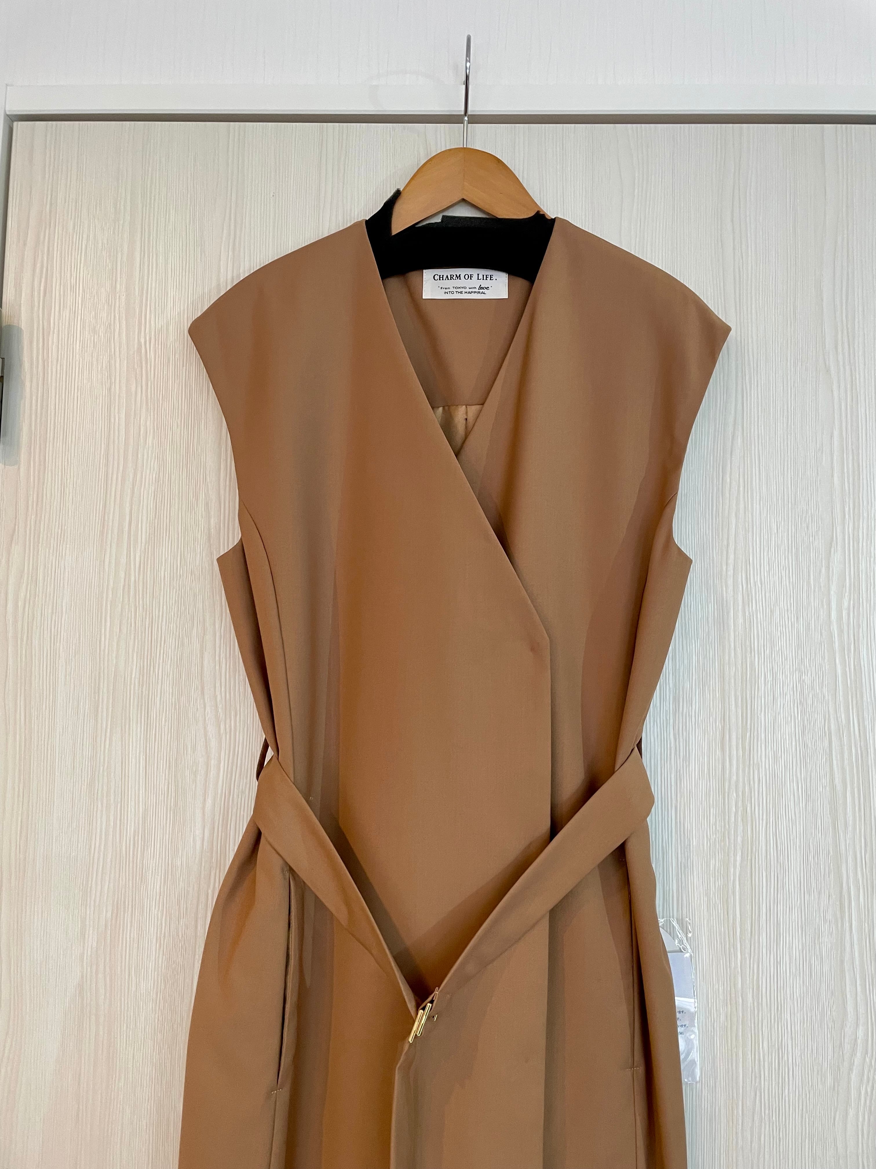 ジレでありながらもワンピースのような魅力を持つ特別な一着です!サッと羽織るだけで、クールで洗練された印象を与えてくれます。デイリーコーデからお出かけ着まで、様々なシーンで活躍し、あなたのスタイルをさらに引き立てることでしょう。どんなボトムスとも相性抜群で、コーディネートの幅を広げてくれます。