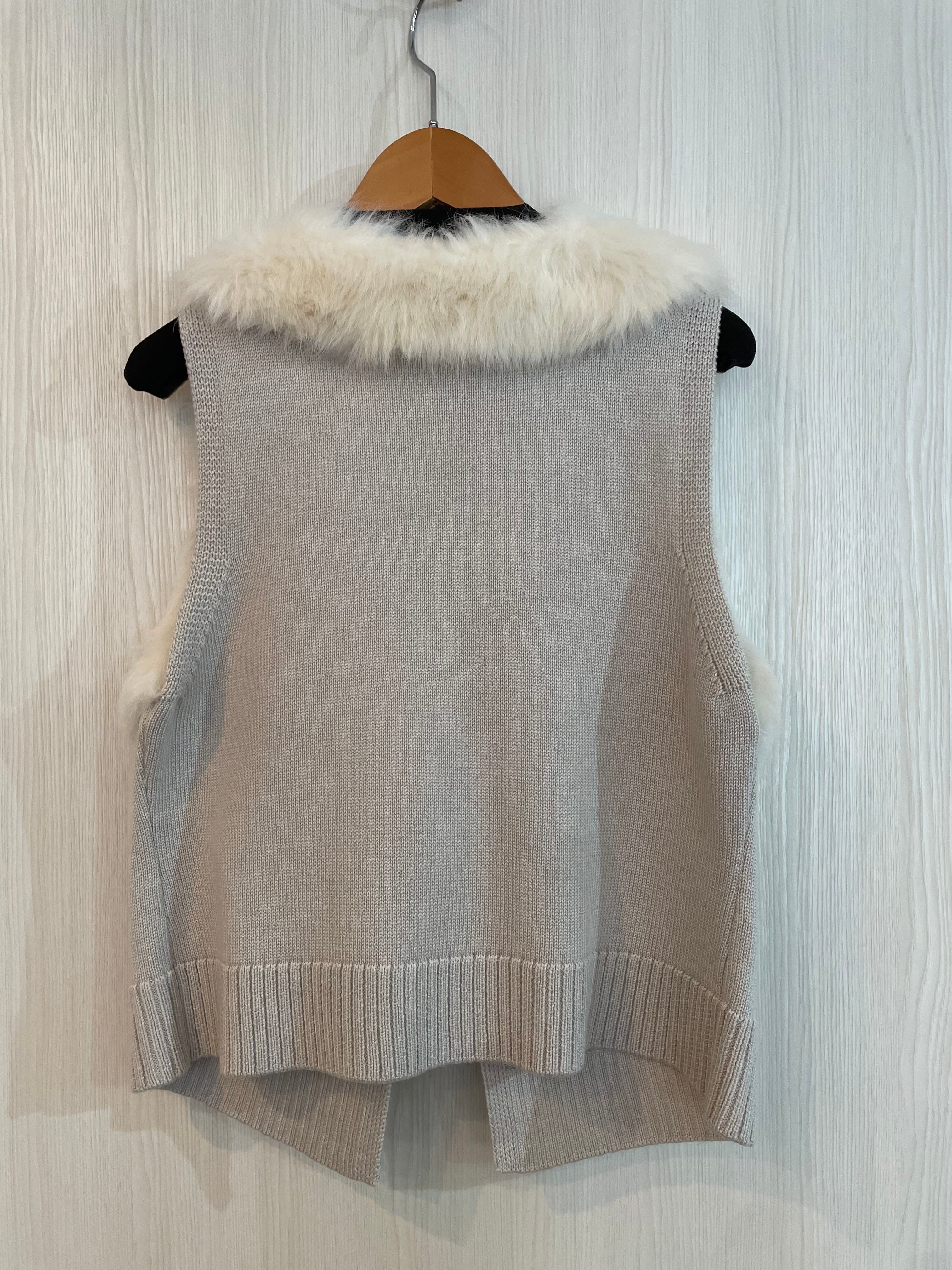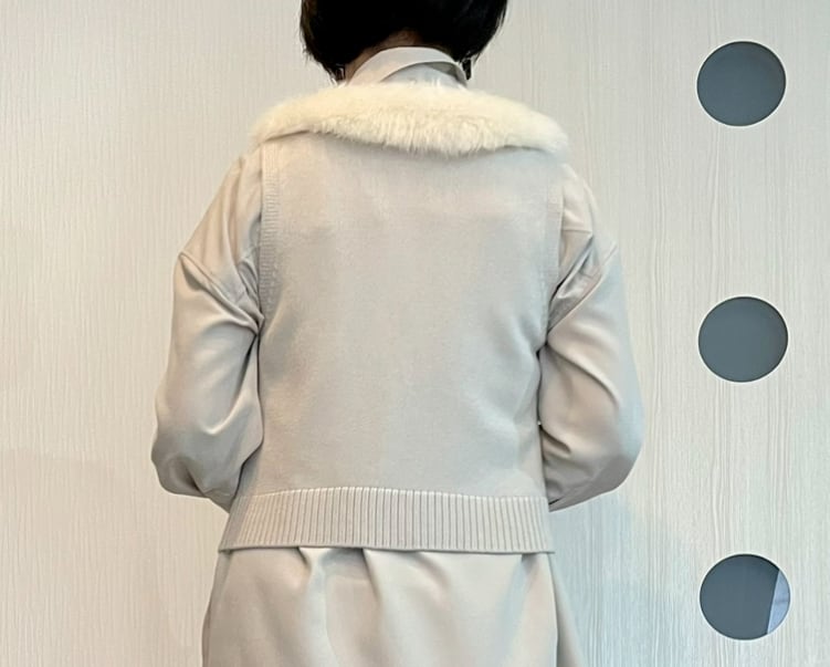 エレガントさとカジュアルさが融合したエコファーベストです!前見頃に贅沢なファーを使い、後身頃にはニット素材を採用することで、快適さとスタイルを両立させました。バランスの良い丈感は、さまざまなボトムスと合わせやすく、日常使いはもちろん特別なシーンでも活躍すること間違いありません