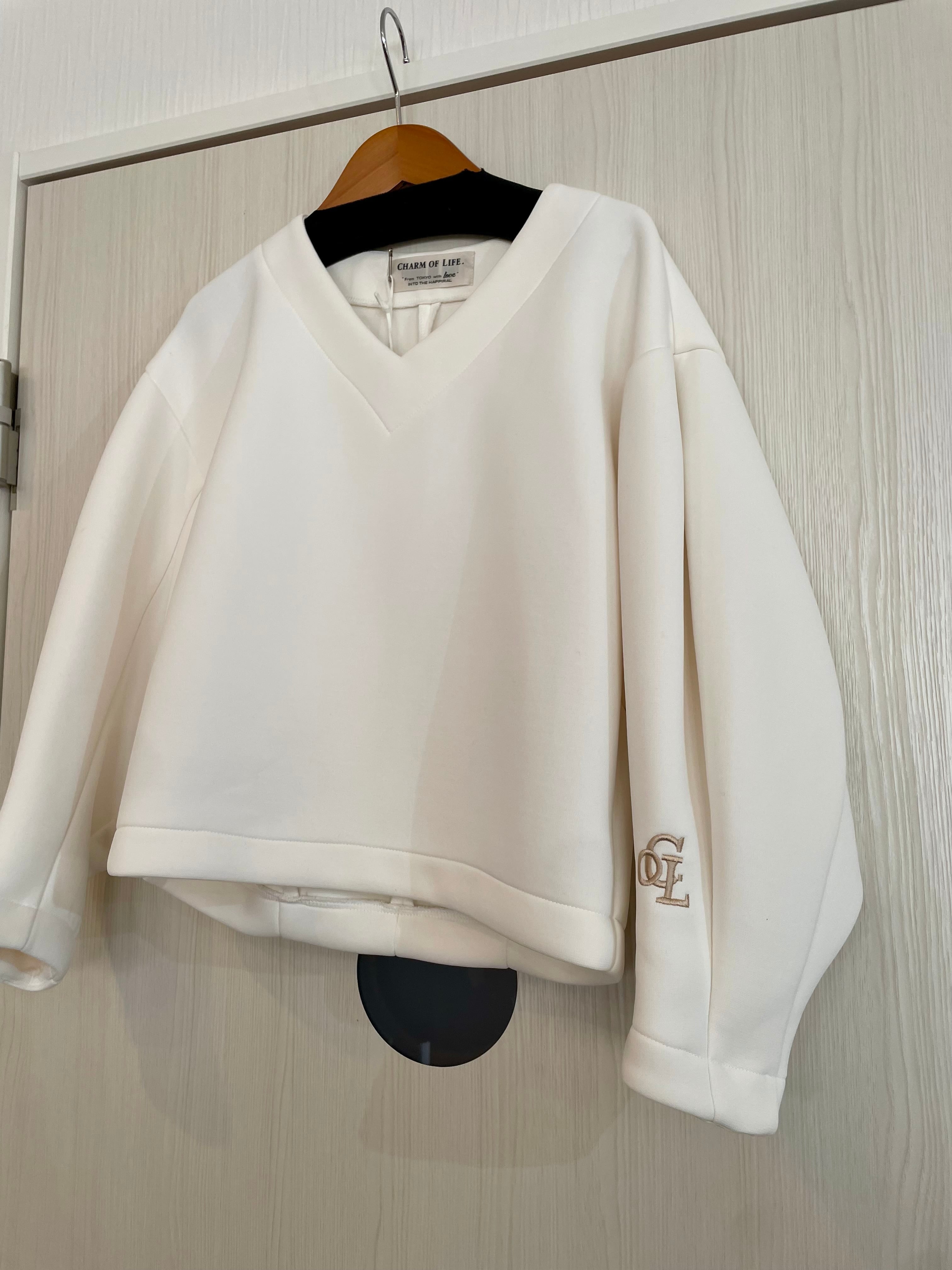 CHARM OF LIFE (チャームオブライフ)ランタンスリープトップスは、袖のデザインが特徴的な大人のための一着です!浅Vネックデザインが、上品さを引き立て、どんなスタイルにもマッチします。柔らかな素材感で、リラックスした着心地を提供し、デイリーから特別な日まで幅広いシーンで活躍するアイテムです。