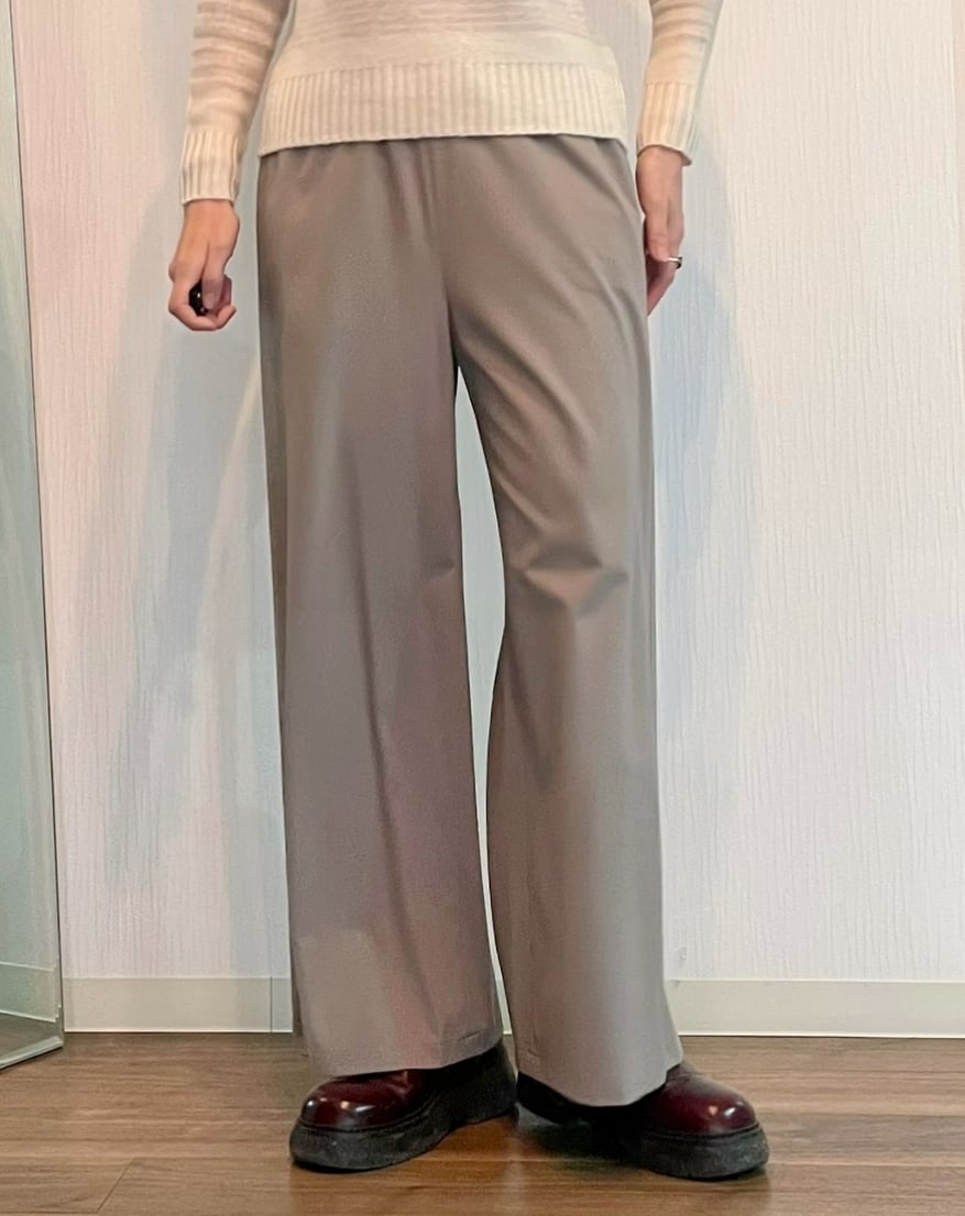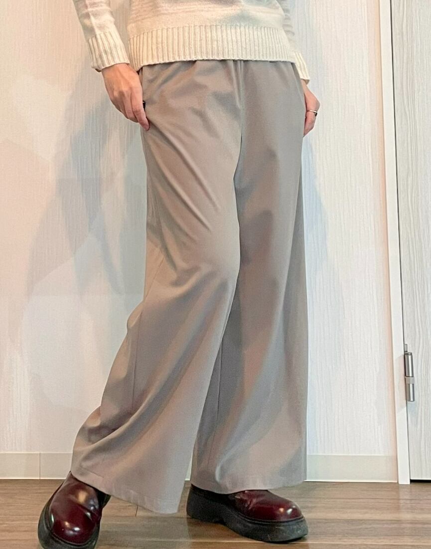 ベーシックシルエットのしなやかセミワイドパンツ。リラックスした着心地とスタイリッシュな印象を兼ね備えた一着です!ウエストにゴムが施されているため、着脱が簡単で、どんな体型にもフィットしやすくなっています。普段使いからお出かけまで、幅広いシーンで活躍できるアイテムです。