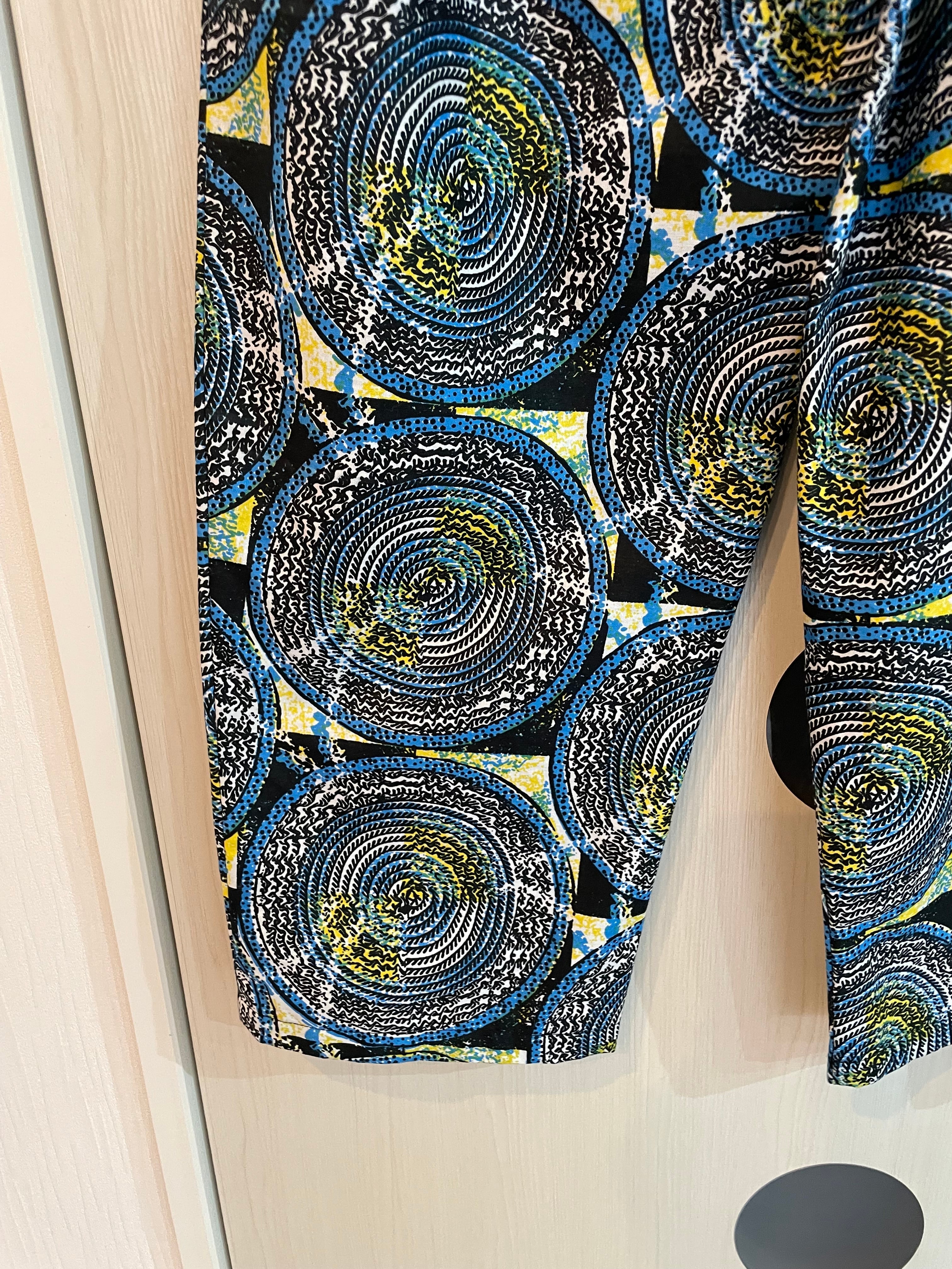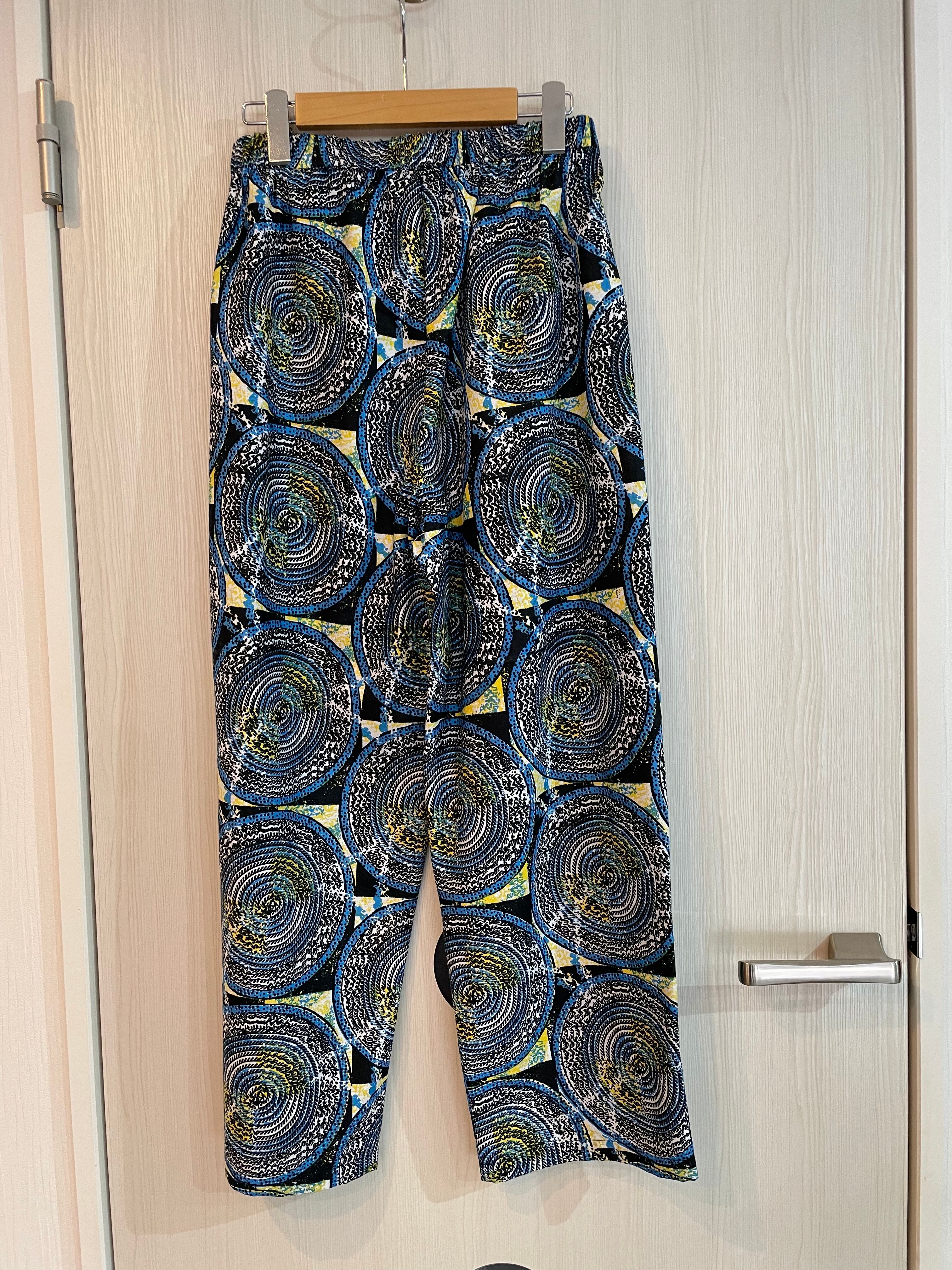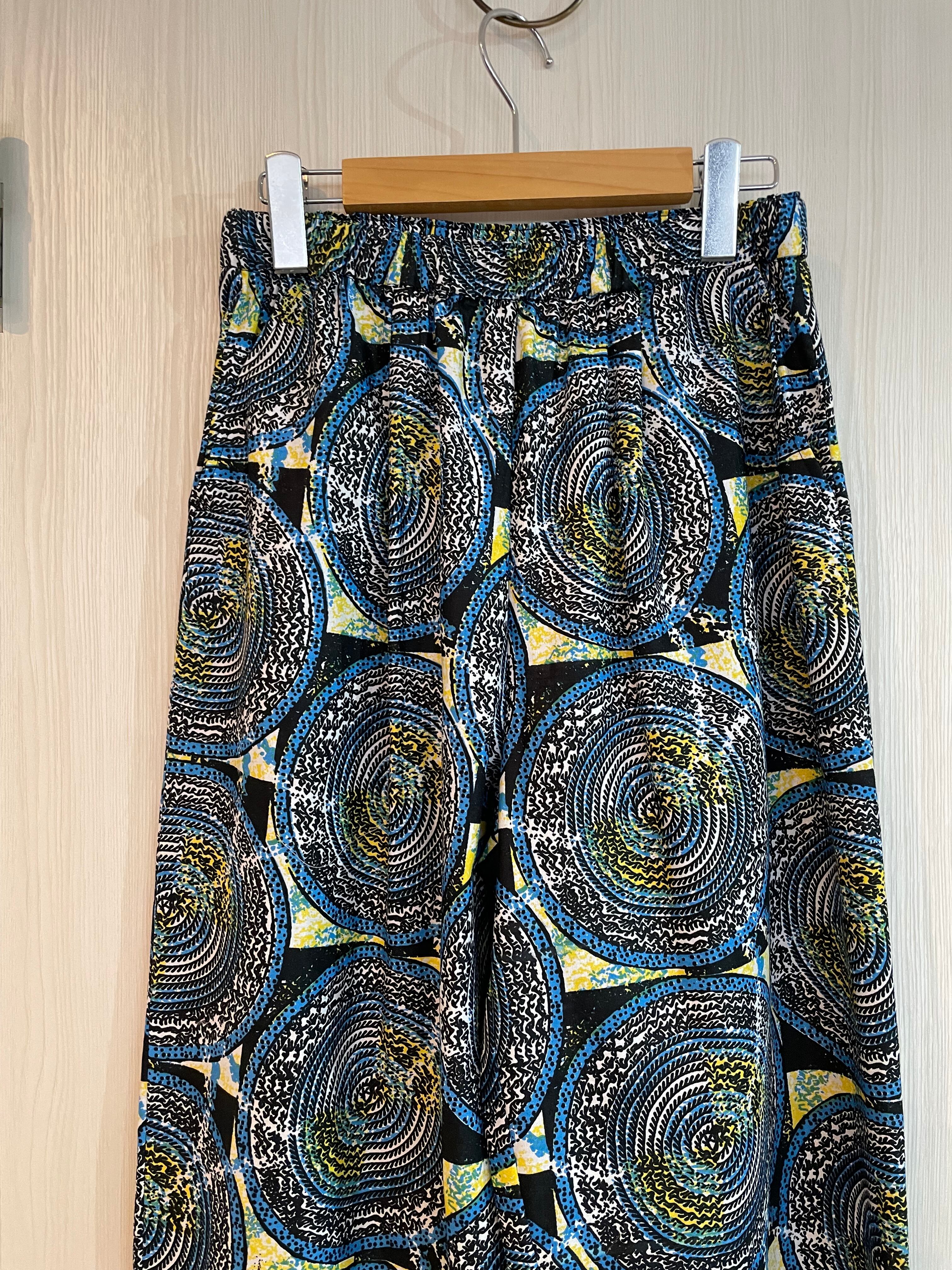 個性的な柄とリラックス感が魅力のアフリカ生地Woodin を使ったパンツ。大人なカジュアルスタイルを実現する一着です!大胆なデザインは、シンプルなトップスとも相性抜群!街中からリゾート地まで、幅広いシーンでお楽しみいただけるユニークなアイテムです。