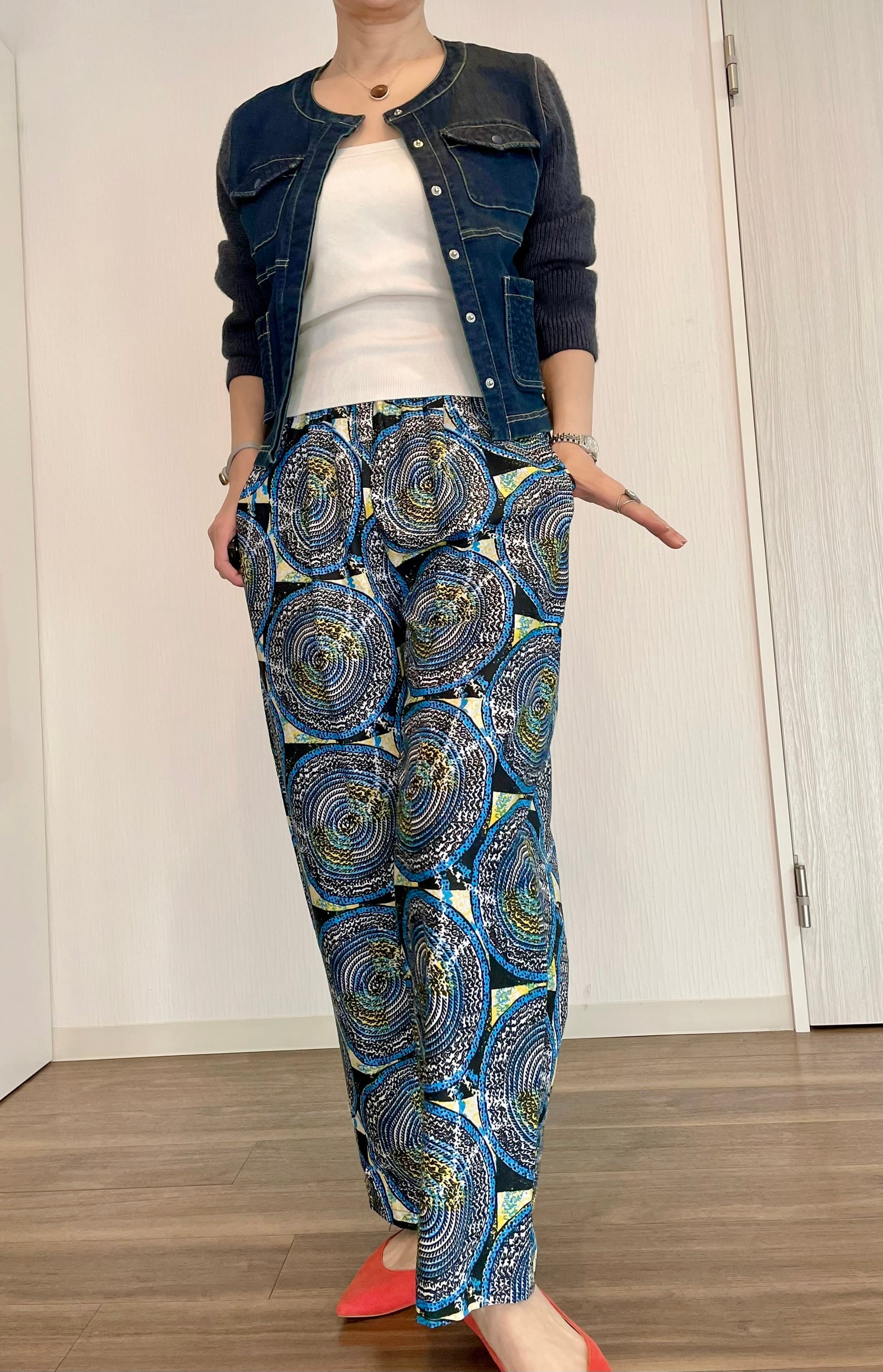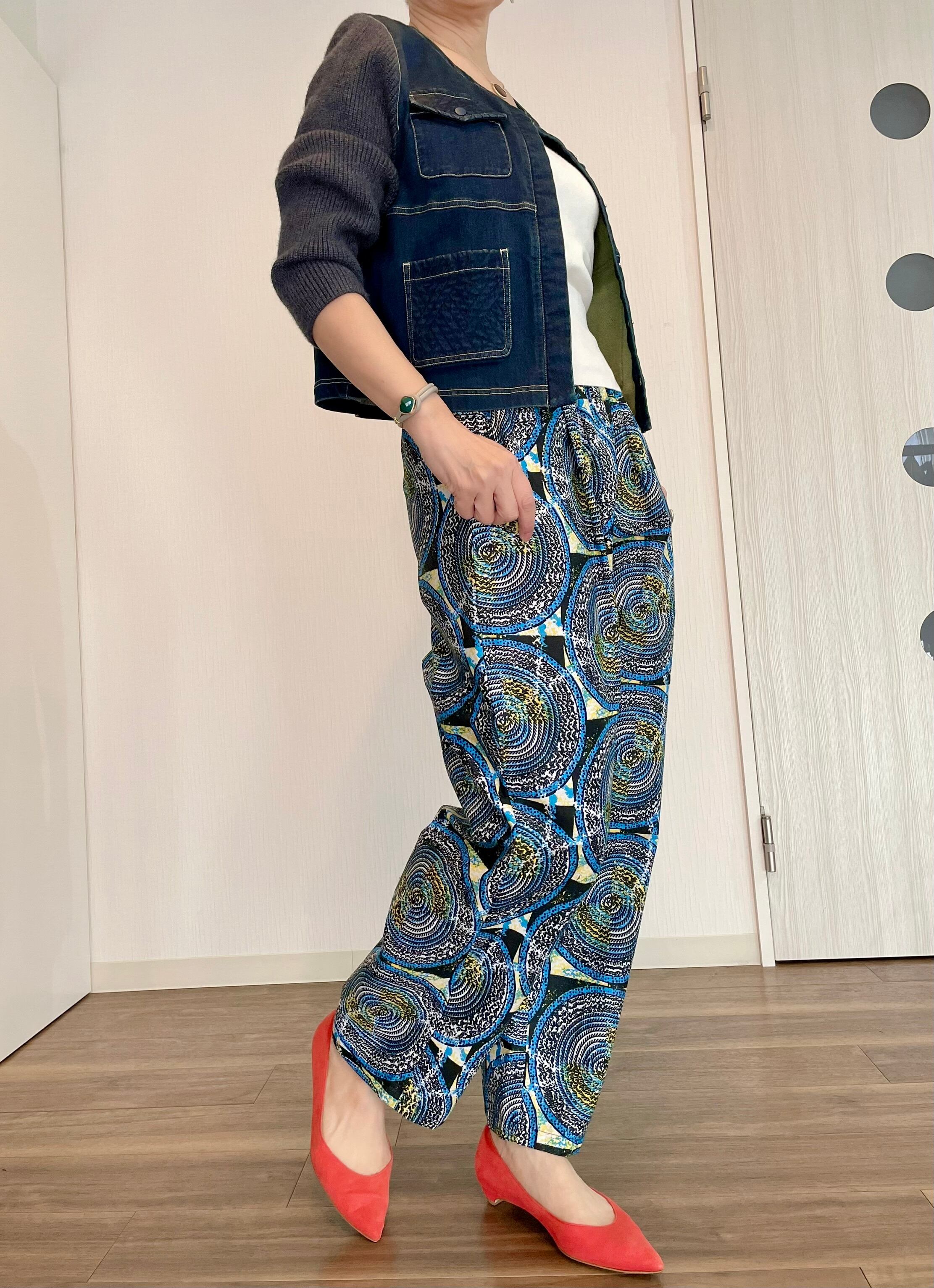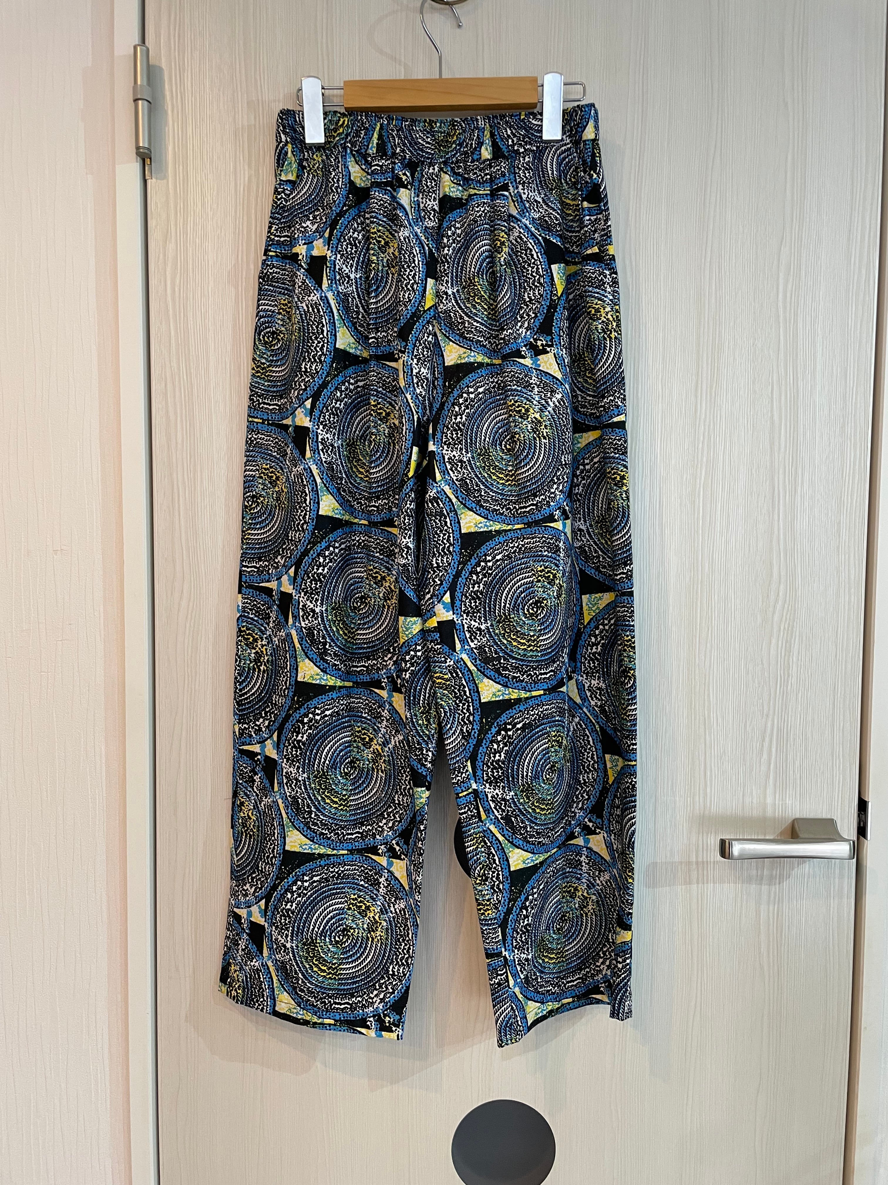個性的な柄とリラックス感が魅力のアフリカ生地Woodin を使ったパンツ。大人なカジュアルスタイルを実現する一着です!大胆なデザインは、シンプルなトップスとも相性抜群!街中からリゾート地まで、幅広いシーンでお楽しみいただけるユニークなアイテムです。