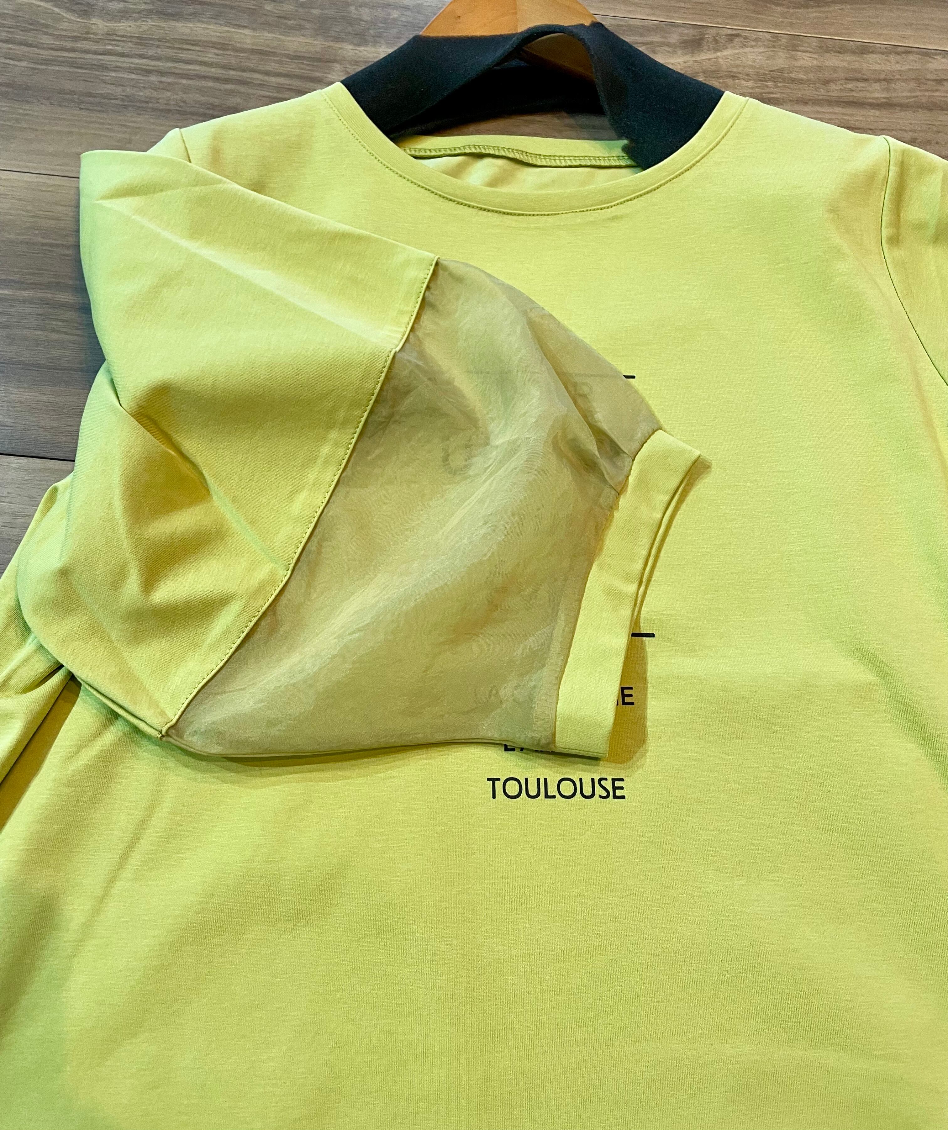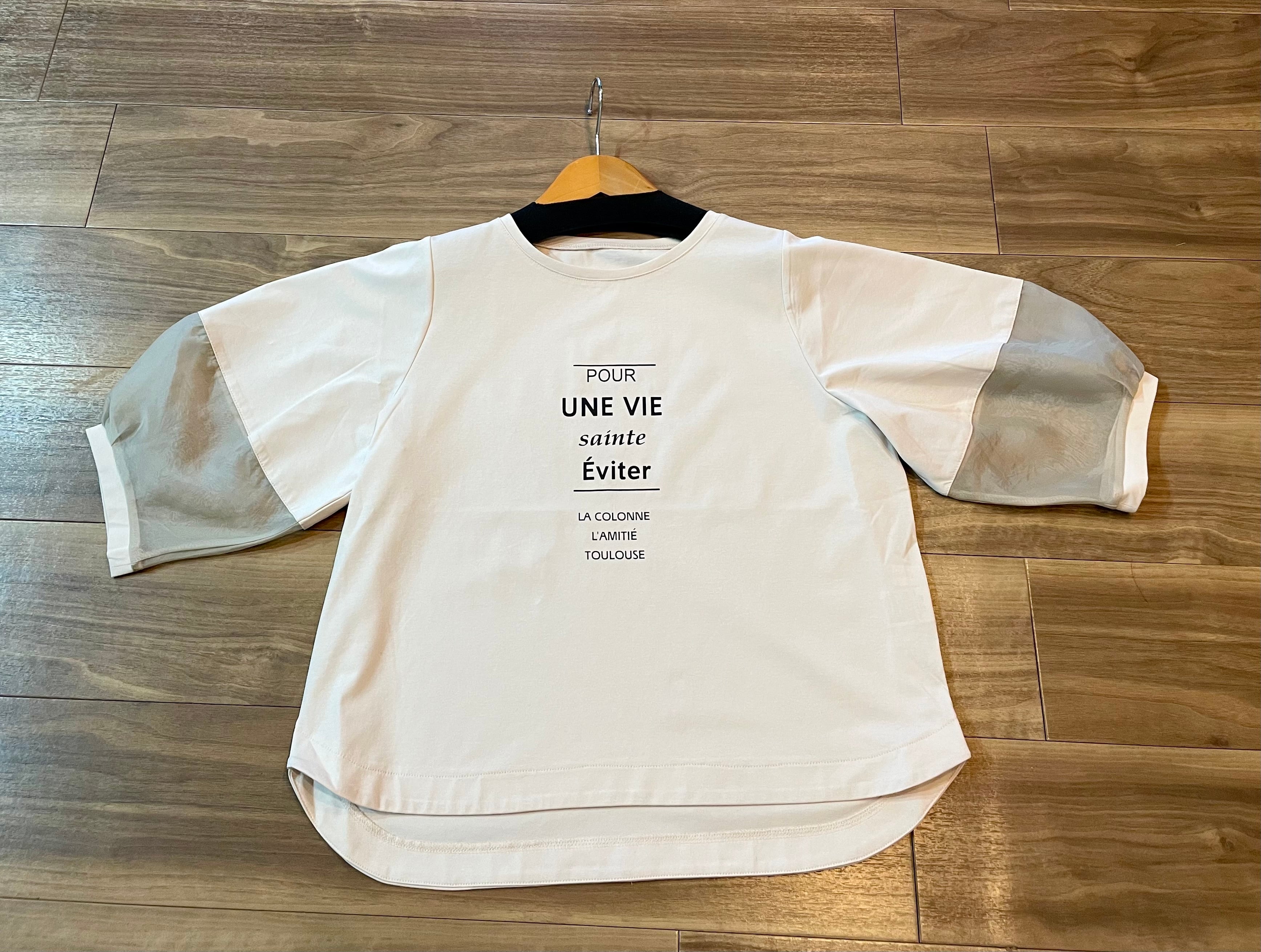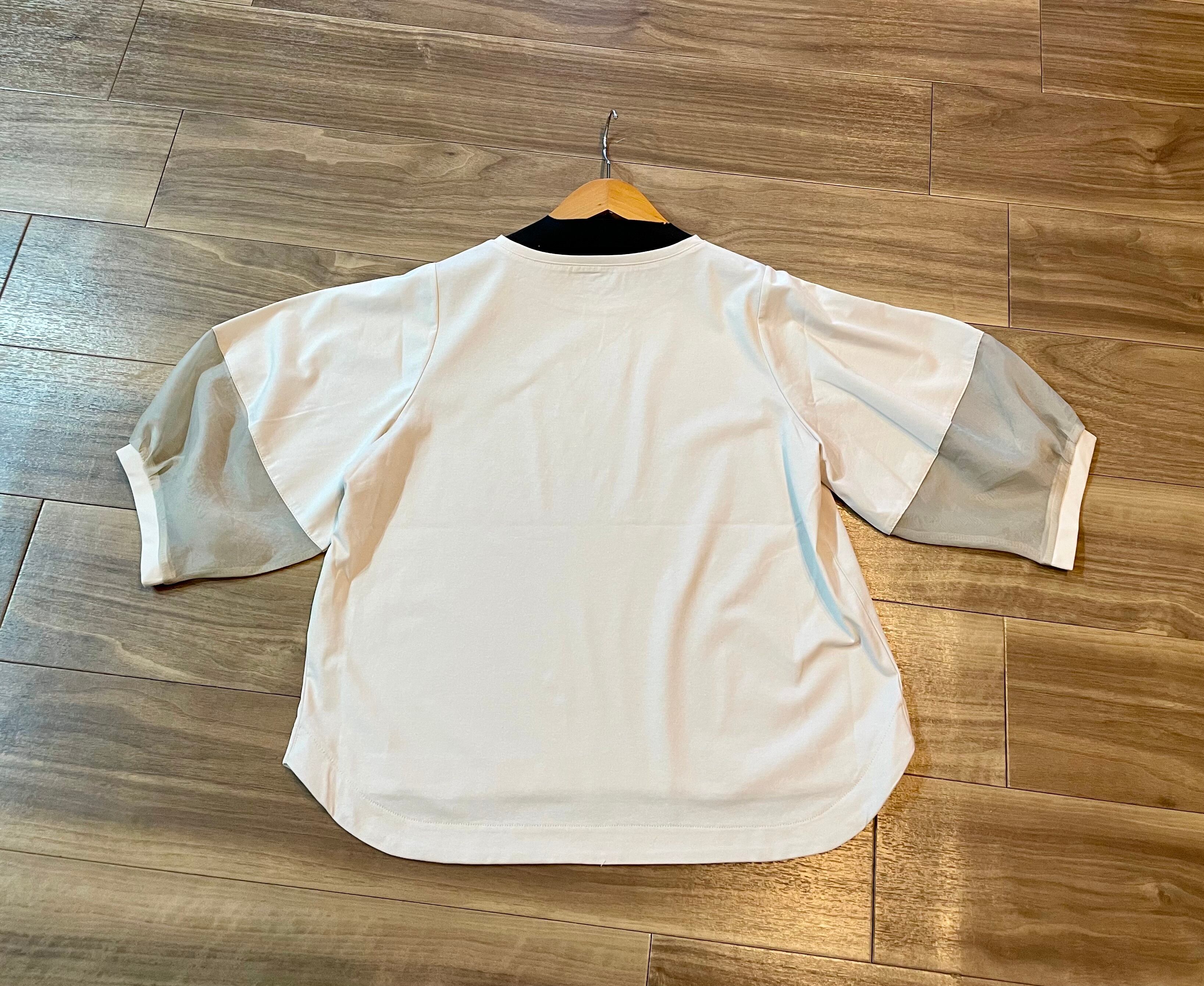 袖,配色シフォンカットソー