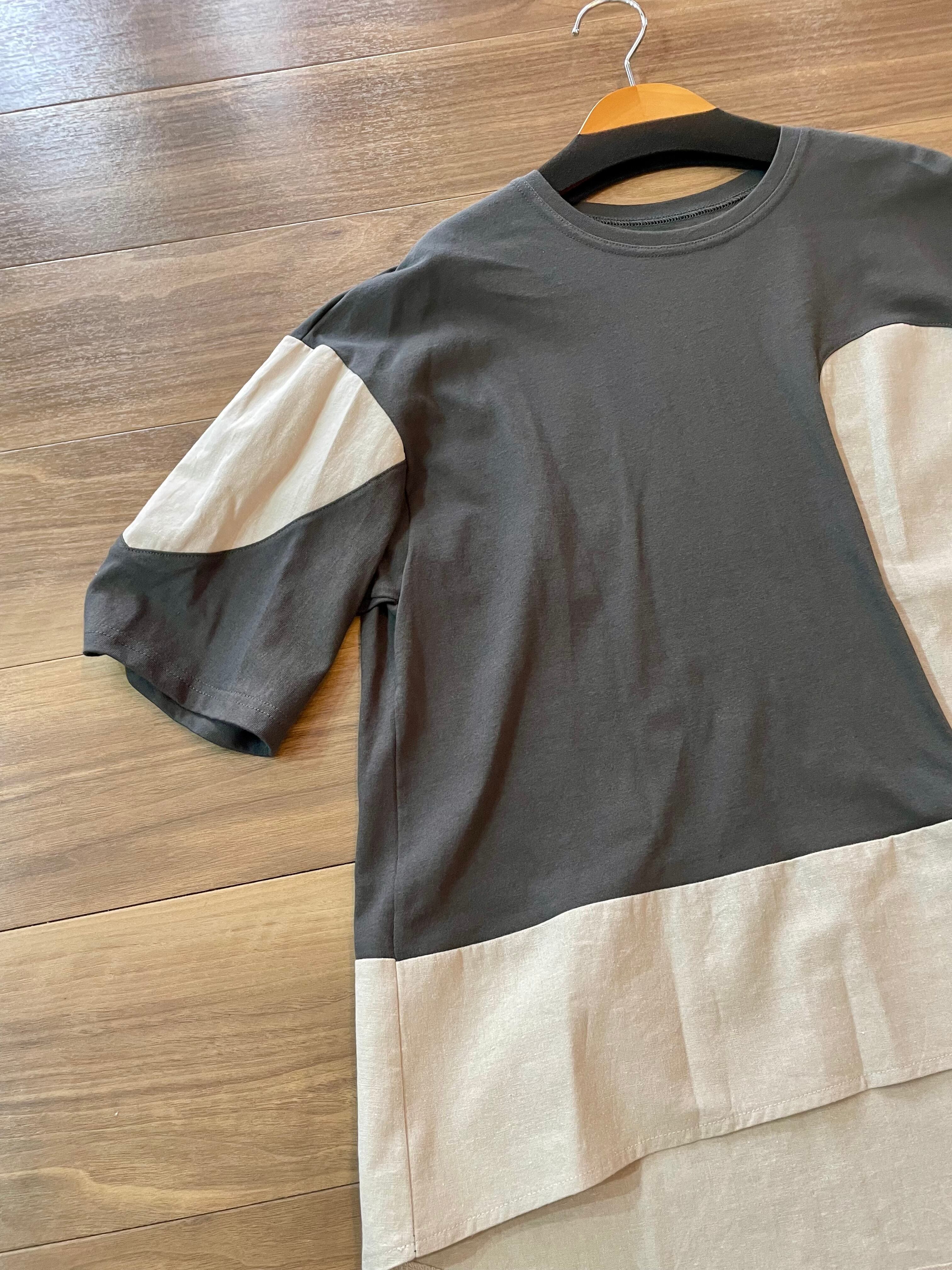 アシンメトリー配色カットソー
