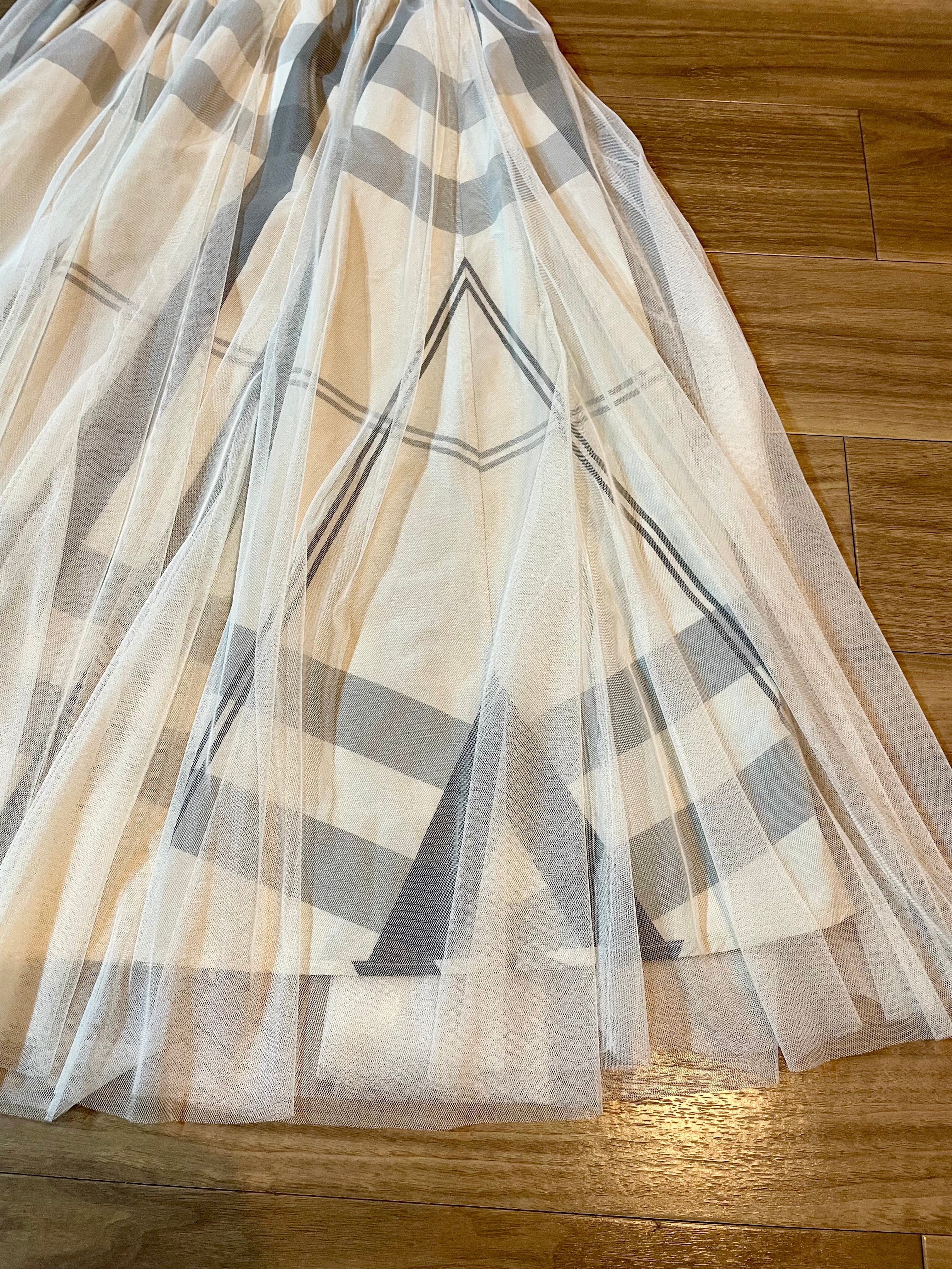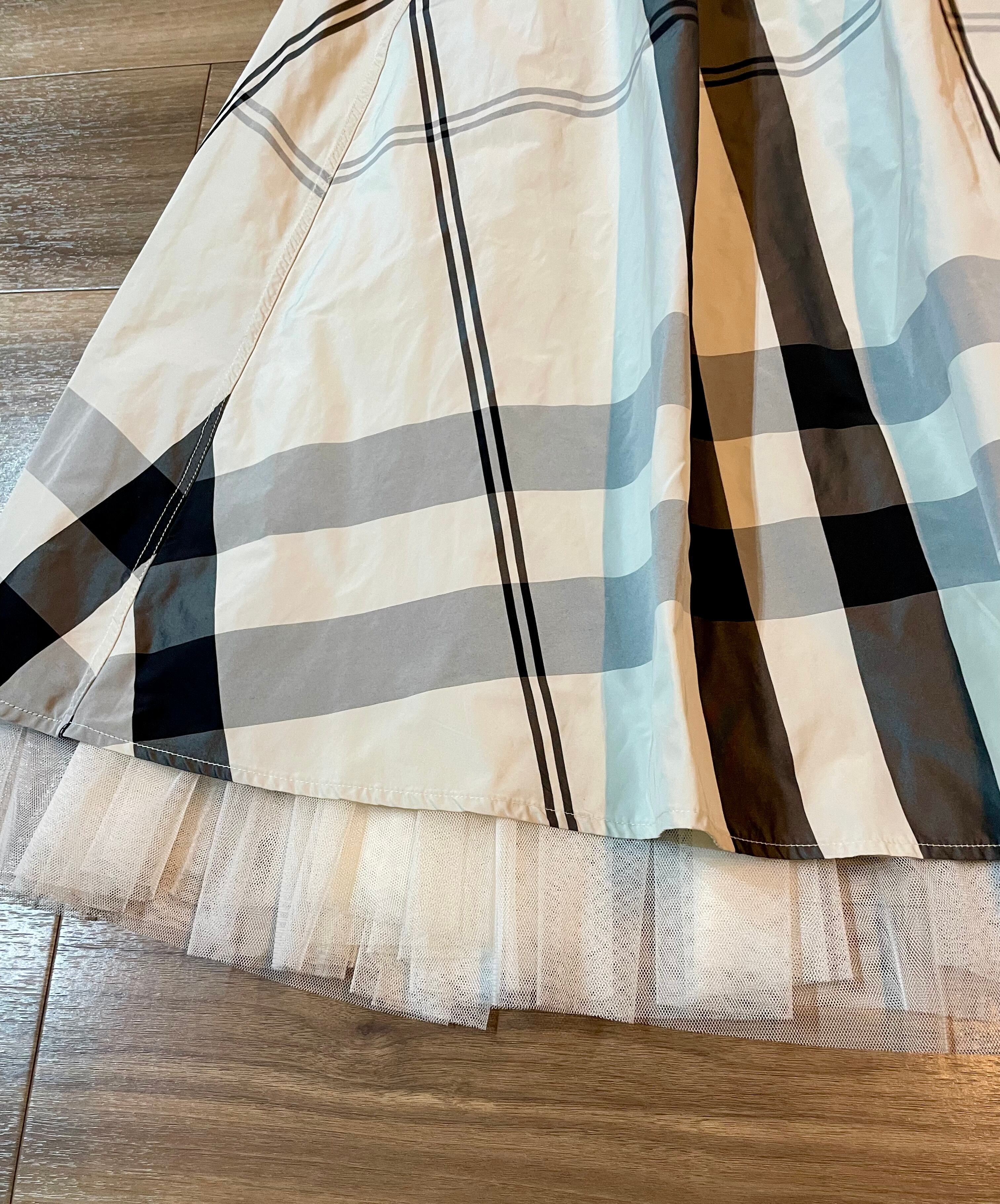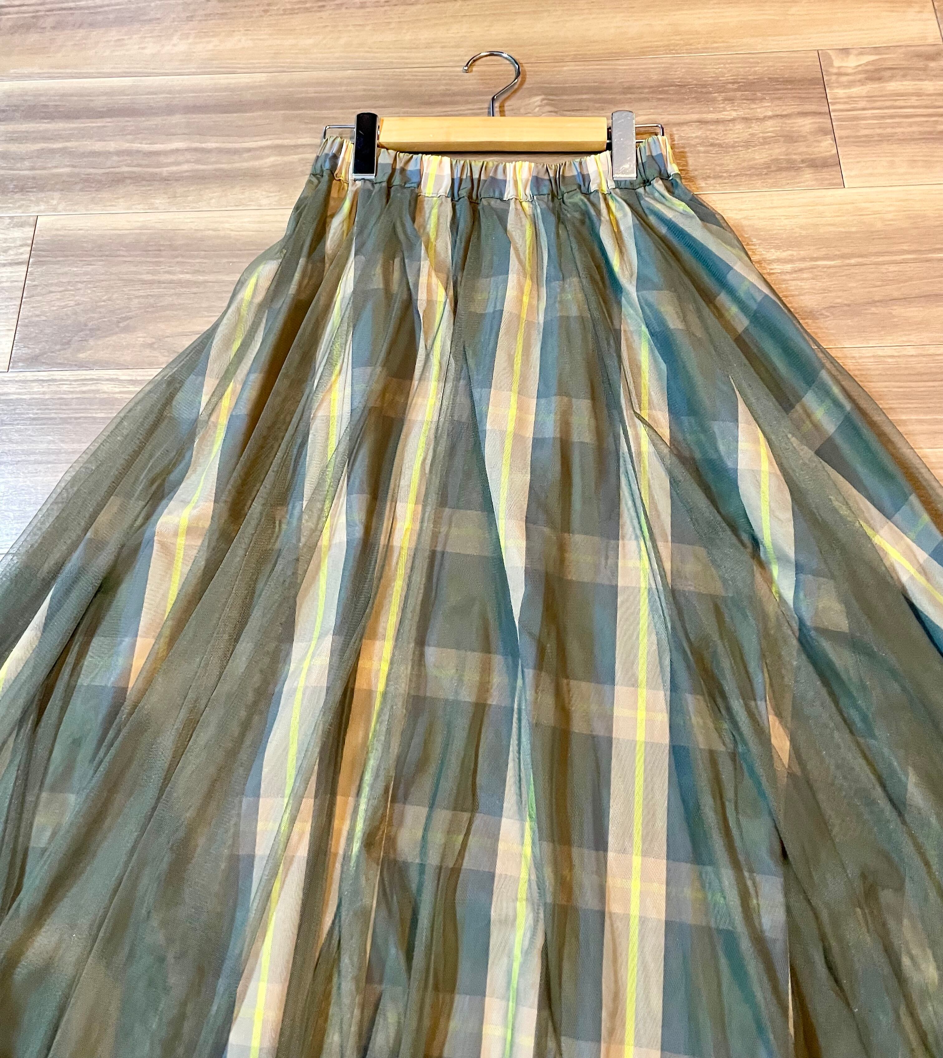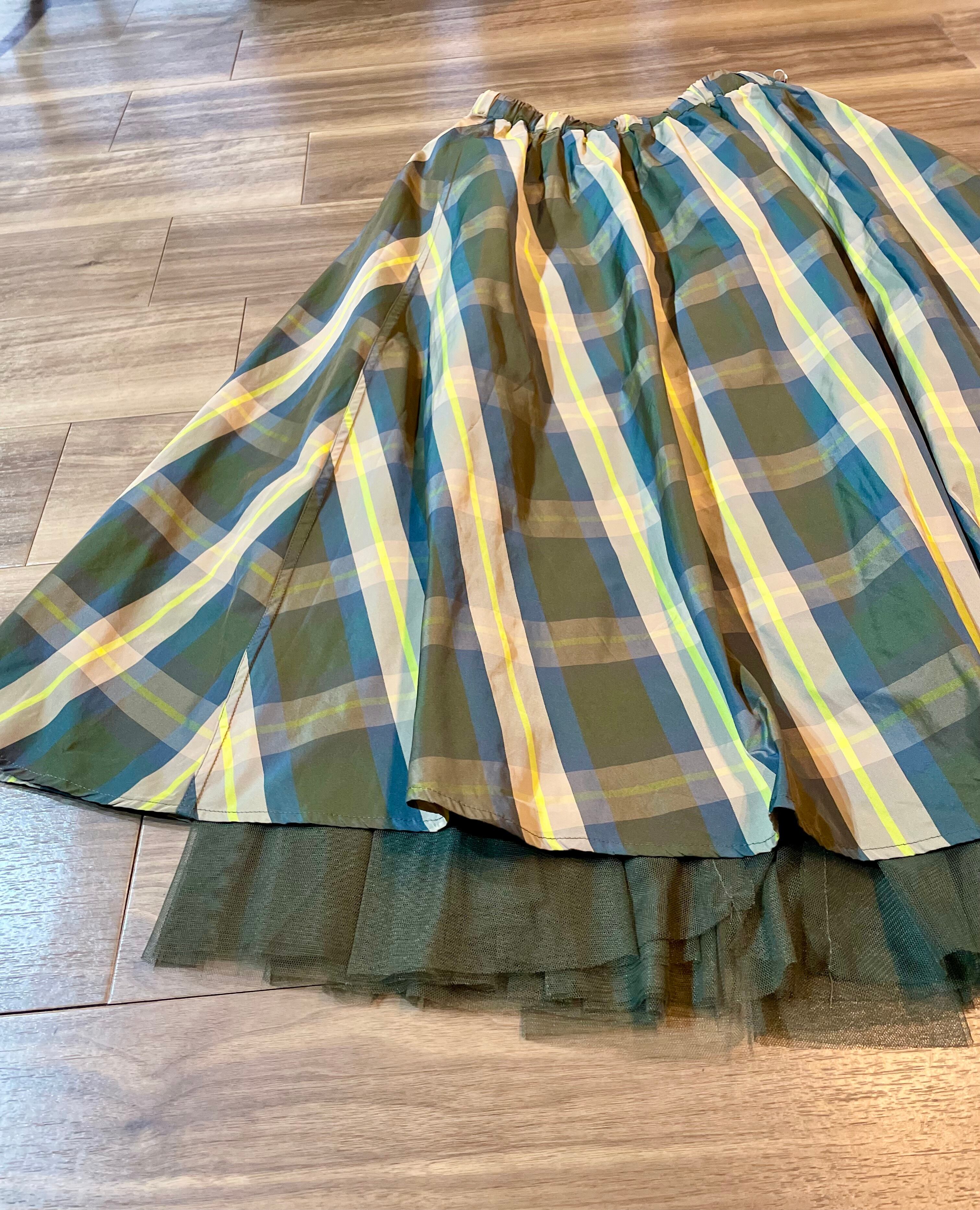 軽やかで華やかな印象を引き立てる、タフタ✖️チュールレースリバーシブルスカートです!特徴的なチェック柄が目を引くデザインで、リバーシブル仕様になっているため、気分やシーンに合わせて異なる表情を楽しめるアイテムです。軽やかなシルエットは、普段使いから特別な日まで幅広く活躍し、どんなコーディネートにも取り入れやすいです。