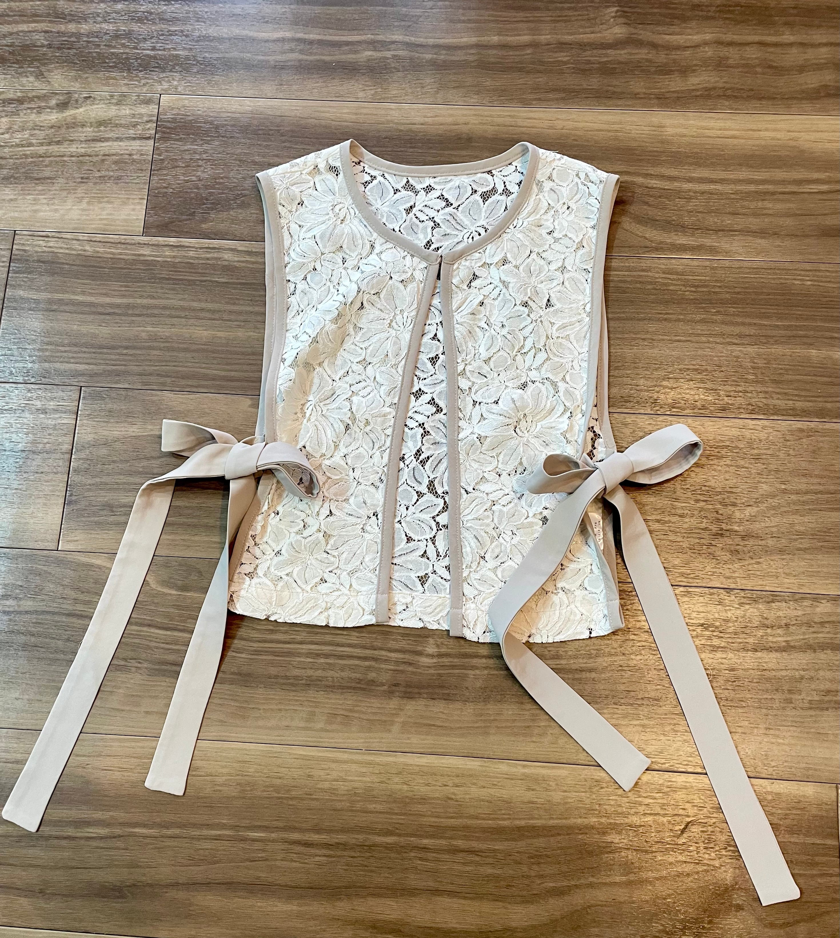 レース,配色リボン付きベスト