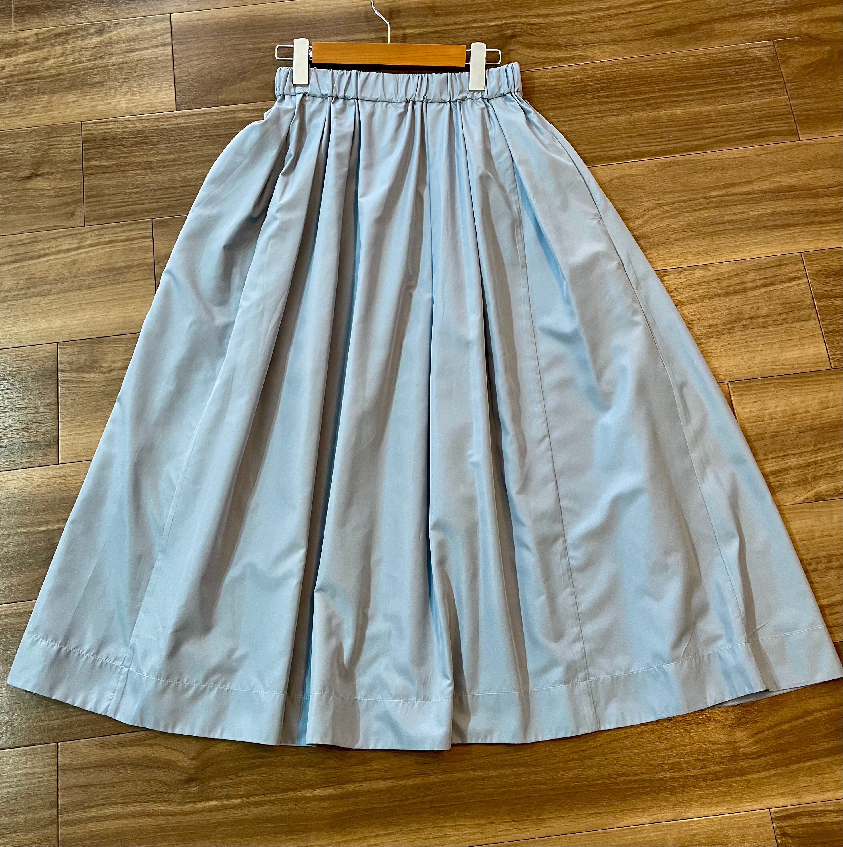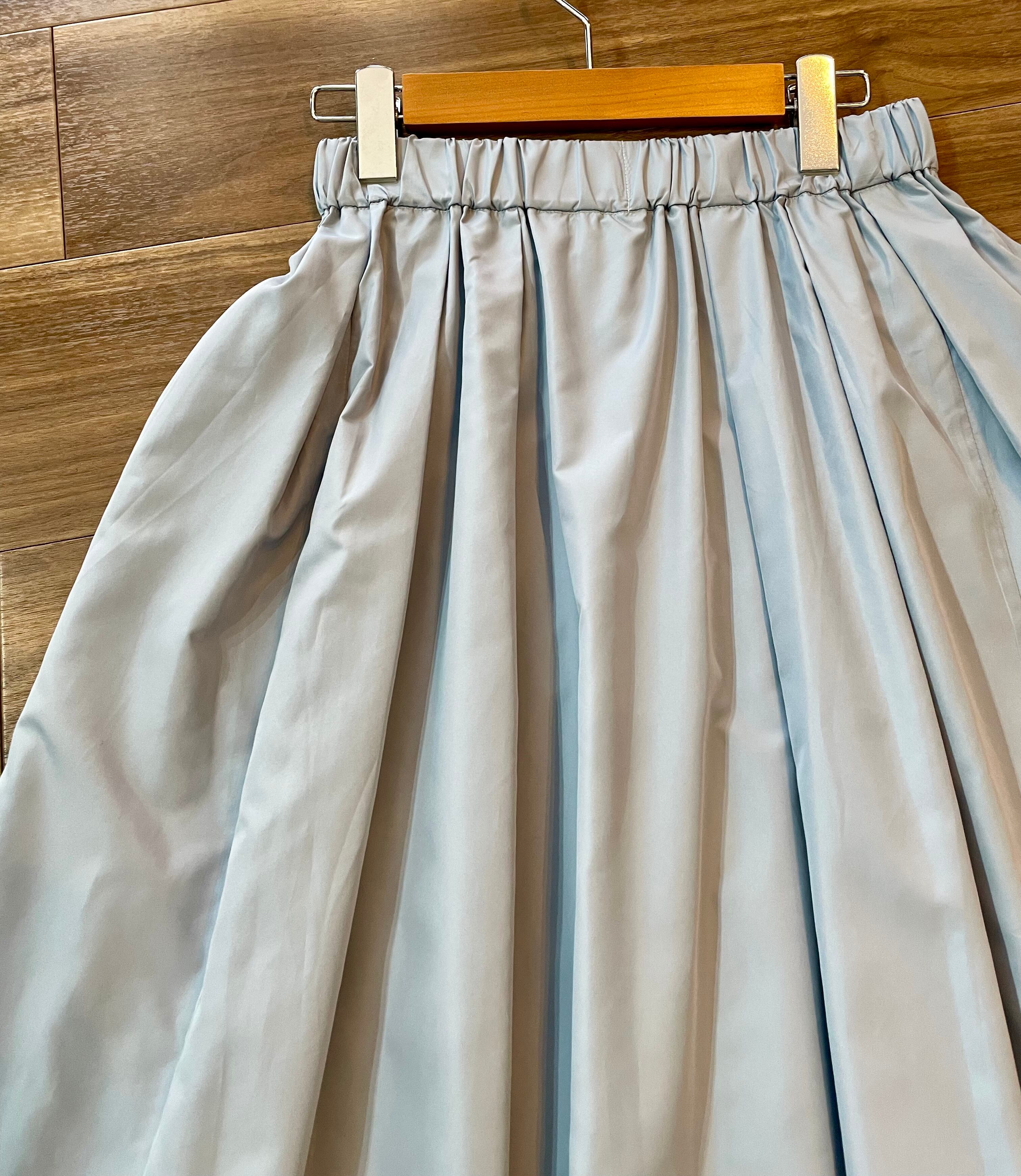軽やかで上品な印象を引き立てる、柔らかフレアスカートです!光沢感のある素材とシンプルなデザインが、どんなコーディネートにも合わせやすく、爽やかなアイスブルーが春夏にピッタリで一枚でスタイリングを格上げするアイテムです。広がらないシルエットは、普段使いから特別な日まで幅広く活躍します。