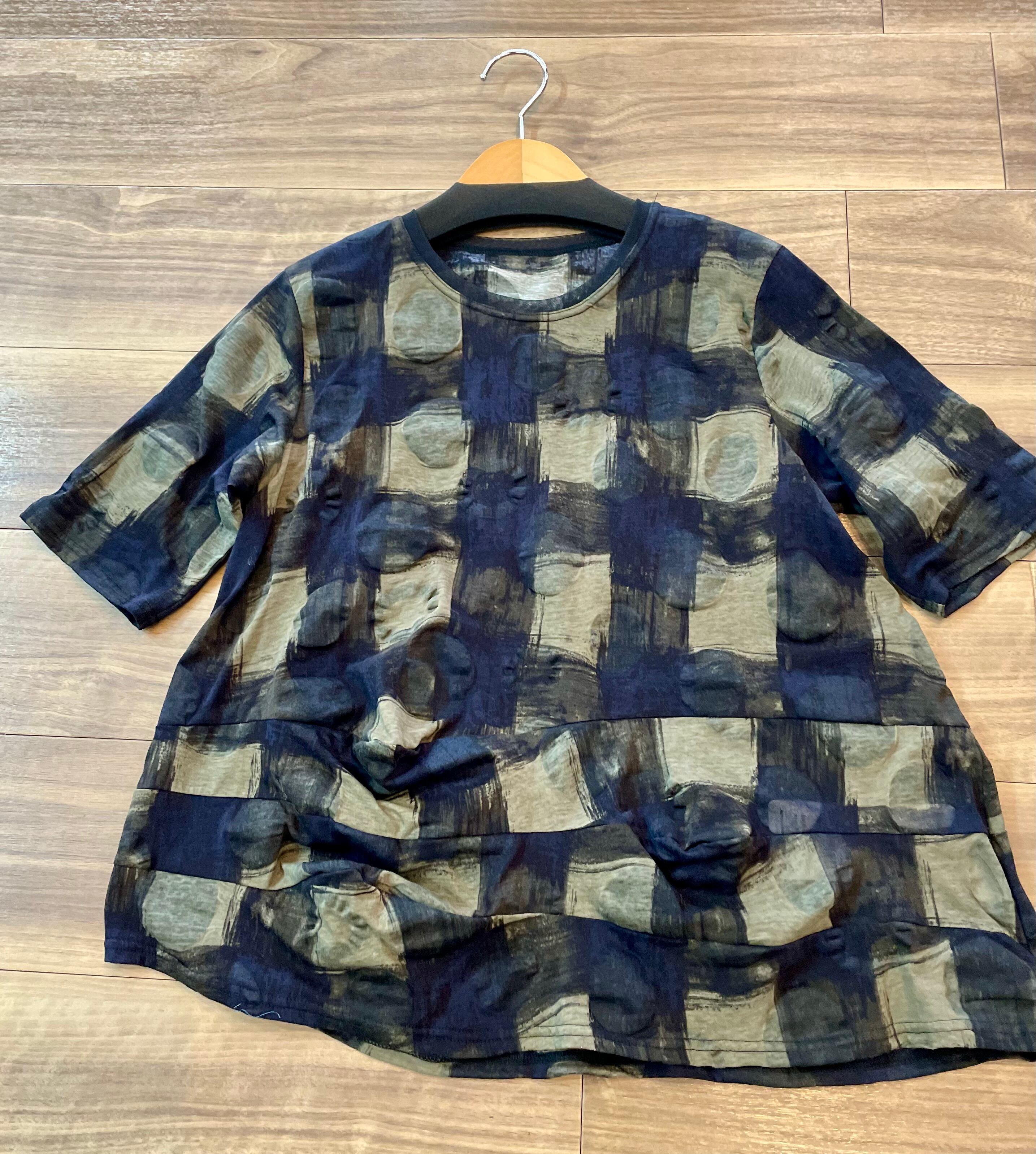 凹凸感のある特殊加工の生地を使用した格子柄カットソーは、風合いが良く、着心地抜群のアイテムです!個性的なデザインが魅力で、デイリーコーデからお出かけシーンまで幅広く活躍します。コーディネートのポイントにぴったりです。